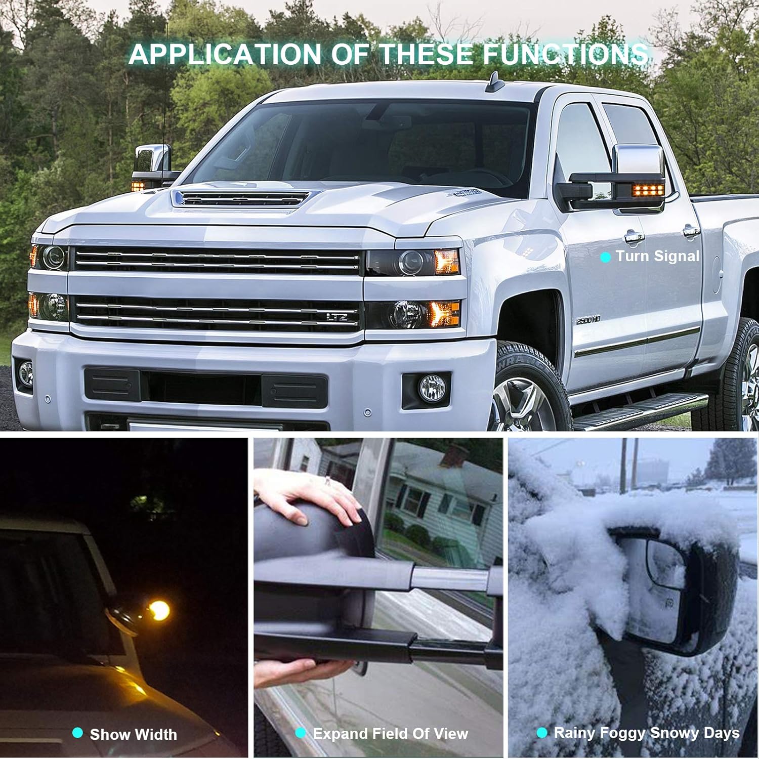 Amazon Com Towing Mirrors For 2014 2015 2016 2017 2018 Chevy Silverado Gmc Sierra 1500 2500 Hd 3500 Hd With Power Glass Led Arrow Turn Signal Light Backup Lamp Running Light Heated Extendable Pair Set Automotive